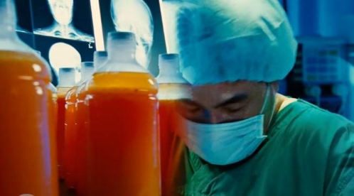 汉娜在整形手术台上做抽脂手术,镜头移过一瓶瓶抽出的脂肪,装了不下二三十瓶。但下面的镜头是,完成手术的汉娜躺在床上,体型没有太大的变化。而过了几个镜头,又出现身形依然庞大的汉娜出现在跑步机,经过日日夜夜锻炼,身材才变成了“S”型。